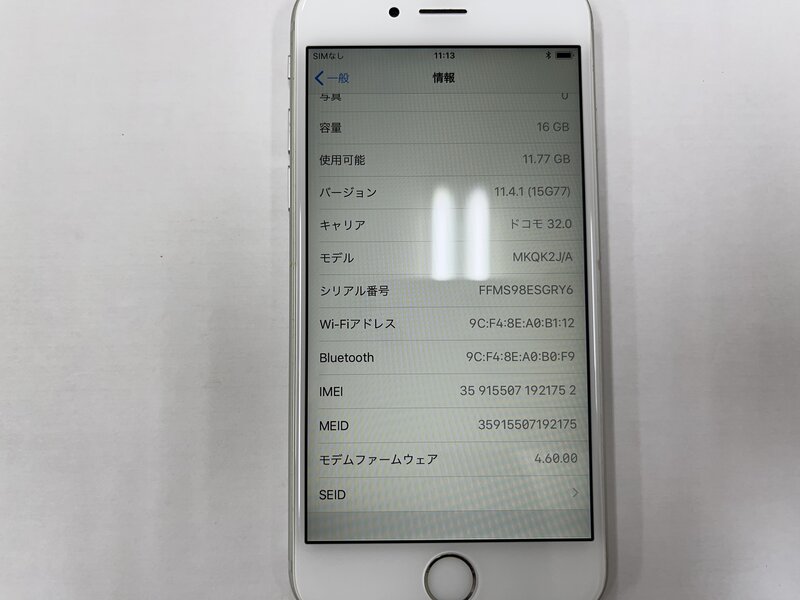 HJ616 SIMフリー iPhone6s シルバー 16GB