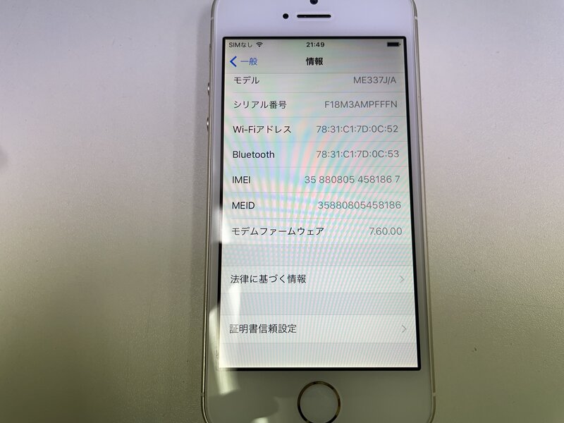MH929 au iPhone5s 32GB ゴールド 判定〇