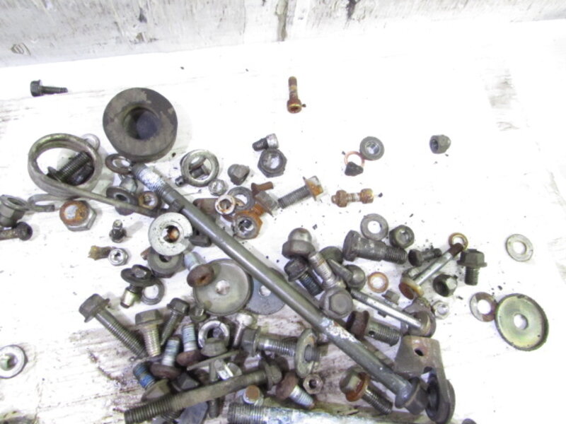 【足回り】 ☆フロントフォーク・・・目視で曲がりもなく、外観特に気になるような破損は御座いません!取り外し前に数回ボトムをさせてみましたが特に気になるようなOIL滲みは見られませんでした! ダストブーツにひび割れが出てきております! ☆スイングアーム・・・目視にて曲がりもなく、外観特に気になるような破損は御座いません!シャフトなどのSETとなります! ☆リアサスペンション・・・目視で曲がりも無く、外観特に気になるような破損は御座いません! ☆ホイール・・・前後共に目視で曲がりもなく、スムーズに回転しておりました! ☆タイヤ・・・前後共に実働車より取り外しており、特に気になるような目立ったひび割れは見られず残り溝もまだまだシッカリと御座います!