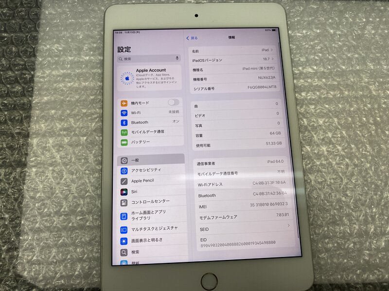アクティベーションロック・・・OFF 画面浮き・本体歪み