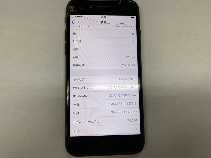アクティベーションロック・・・OFF 画面割れ・インカメラ曇り