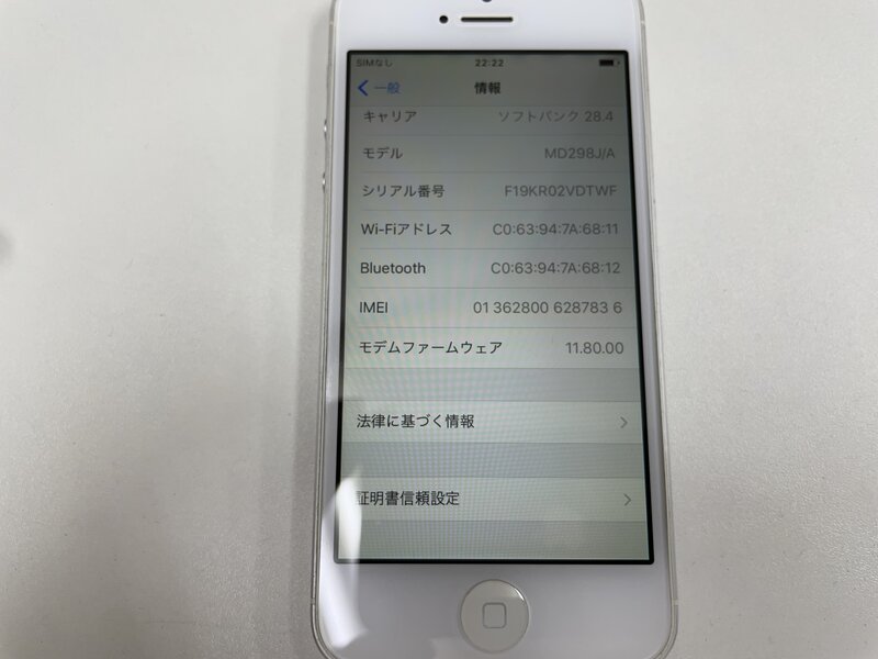 MI024 softbank iPhone5 16GB ホワイト 判定〇