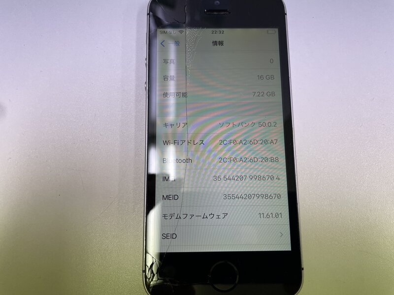 アクティベーションロック・・・OFF 画面割れ・液晶焼け・バッテリー劣化
