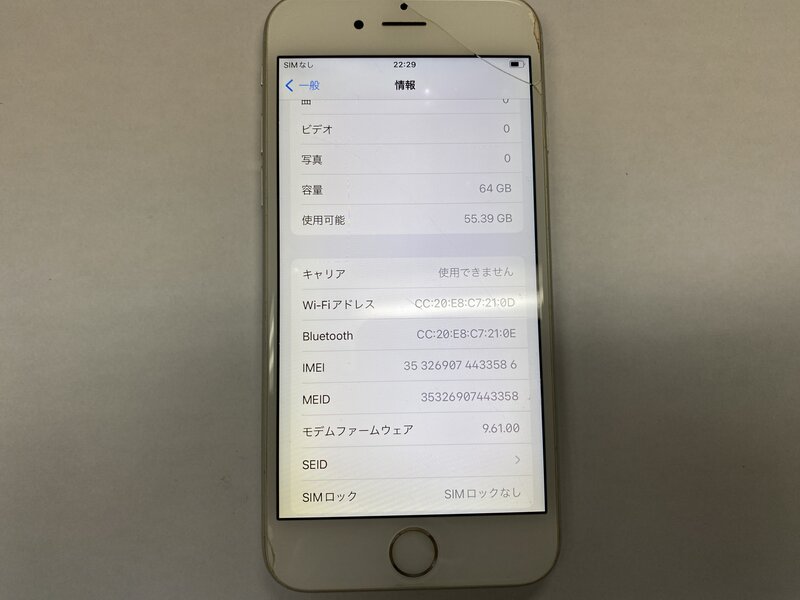 アクティベーションロック・・・OFF 画面割れ・液晶黄ばみ・光漏れ