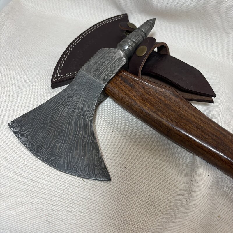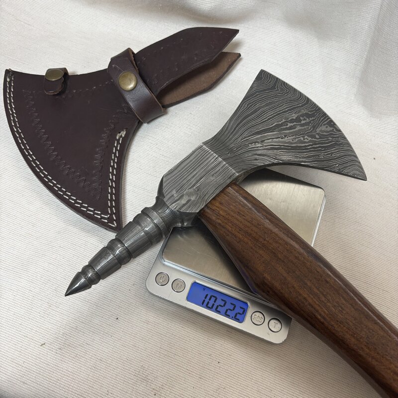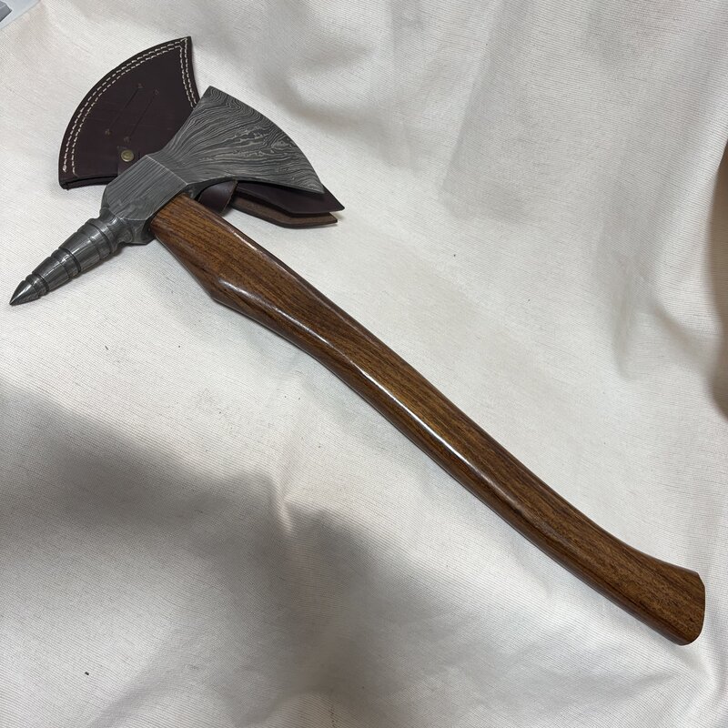 希少 デッドストック級 斧 ダマスカス 全長48cm 大型 ウッド カスタム ハンドメイド アックス ハチェット 薪割り キャンプ IW511BK02AX100