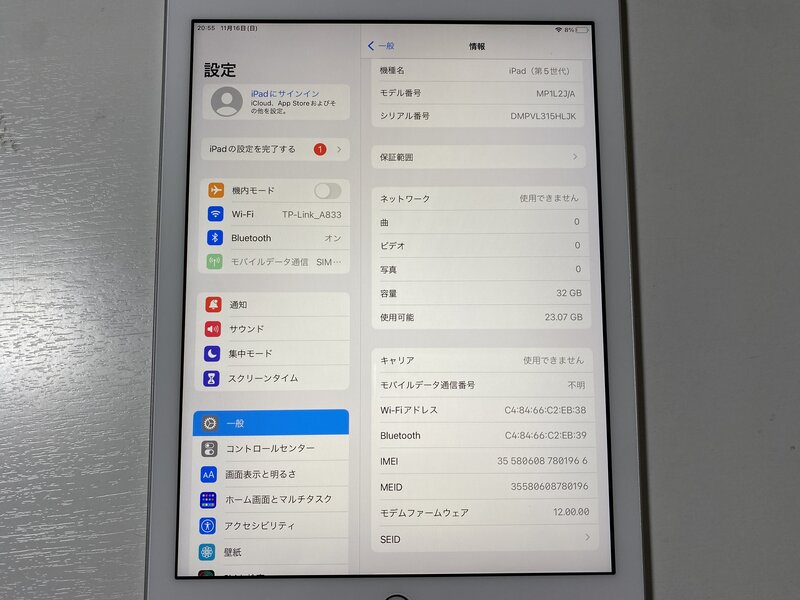IX335 SIMフリー iPad (5th generation) 32GB Wi-Fi+Cellular シルバー