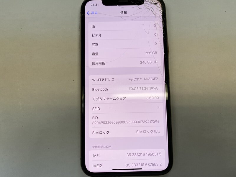アクティベーションロック・・・OFF 画面割れ・液晶漏れ・インカメラ割れによる曇り