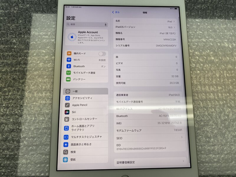 EP912 SIMフリー iPad 第7世代 Wi-Fi+Cellular A2198 シルバー 32GB