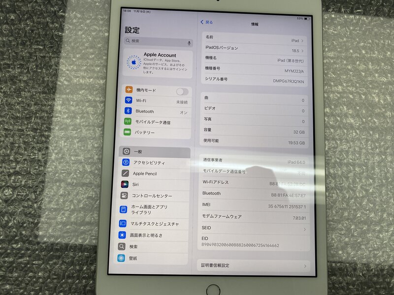 EP935 SIMフリー iPad 第8世代 Wi-Fi+Cellular A2429 シルバー 32GB