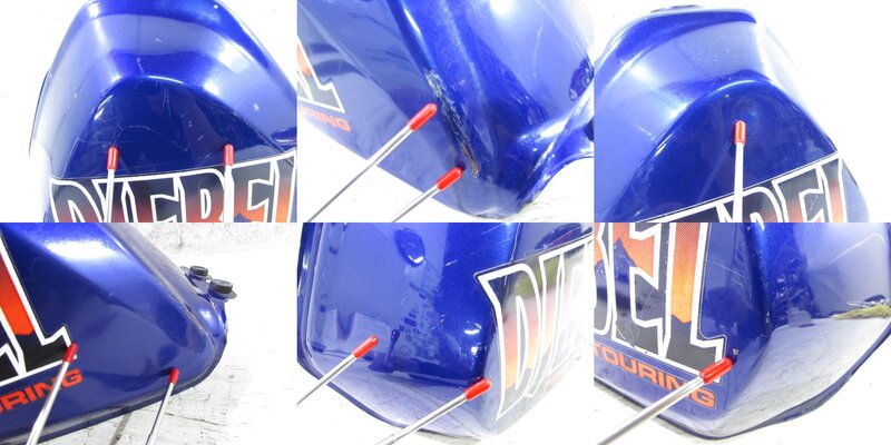 【外装】 ☆タンク・・・特に大きな破損はなく、艶も御座います! 、タンク内見える範囲に特に気になるような錆は見られません! 一部傷や凹みが御座います! ☆Fフェンダー・・・特に気になるような破損は御座いません!先端に加工が御座います! ☆サイドカバー・・・左右共に特に気になるような破損は御座いません! ☆テールカウル・・・特に気になるような破損は御座いません! ☆シート・・・特に大きな破損は御座いません! 一部小破れや補修された箇所が御座います!