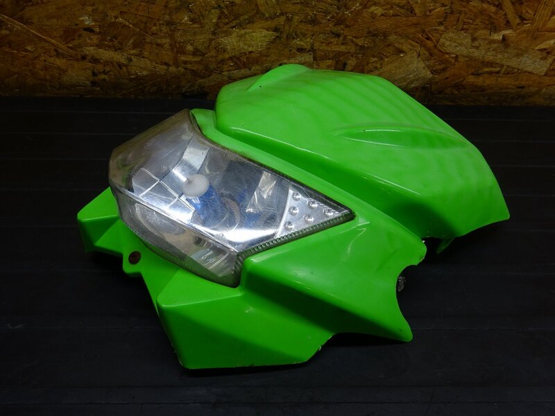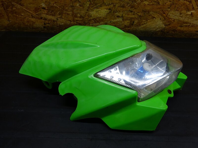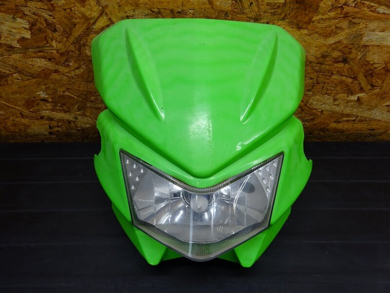 【251118】KDX200SR(DX200G-004)◆ 社外ヘッドライトカウル フロントカウル ヘッドライト カット加工/破損有 【検索:125 220 250