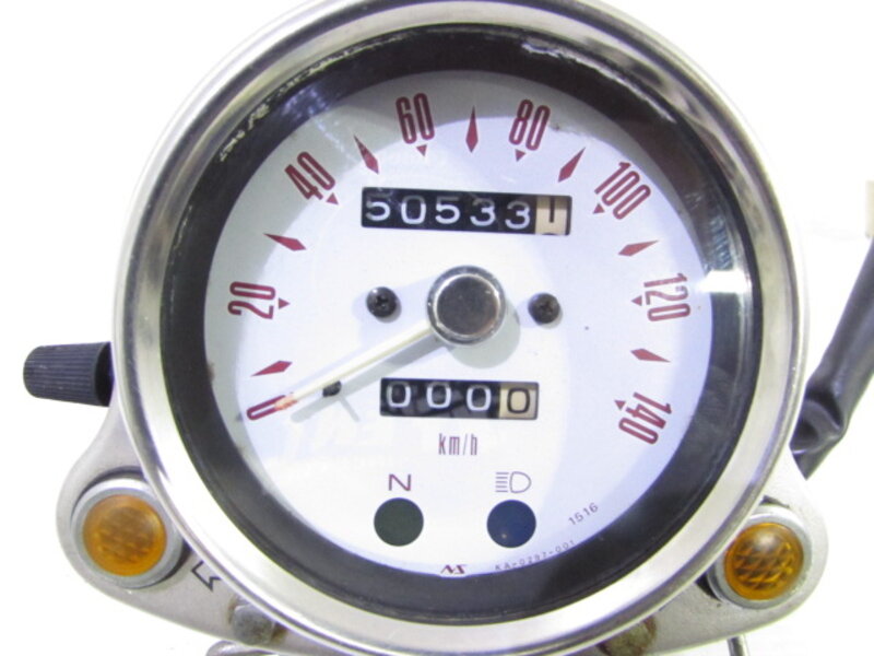 【商品に関してのお願い】※了承できない方は絶対に入札しないでください※ ■車両より取り外した中古部品となり経年や使用に伴う腐食・傷・錆・汚れ・補修跡などがある場合が御座いますので商品画像をよくご覧頂き商品状態の把握をされたうえ、御検討くださいますよう御願い致します。 ■特別に記載がない限り出品物は写真の物が全てとなります。使用にあたりたとえその他の部品が必要な場合でも商品画像に写っていなければ何も付属致しません。 ■固定部分の爪など新品時のすべて正常状態を把握できておりませんので破損に気が付かない場合が御座います。商品画像をご覧頂きご確認ご了承のうえご検討を御願い致します。 ■約30年前の大変古い車両よりパーツを取り外しておりますので動作確認済商品でありましても突然の故障や寿命または経年劣化により輸送中の軽衝等での破損が起きてしまう可能性が御座います。すべての商品一切の保障は出来かねますので必ず御了承の上ご検討下さいますようお願い致します。 ■配線の加工やちぎれ等がある場合が御座います!すべての正規状態を把握できておりませんので商品画像をよくご覧頂き必ず商品状態の把握を御願い致します。 ■入庫車両よりパーツを取り外しておりますので前オーナー様等によりパーツの加工などが施されている場合が御座います! すべての商品の正式な状態が把握できていない、また内部改造の場合は外観ではわかりませんのでそのような内容の見逃しや記載間違いが起こる可能性が御座います。ご了承、ご納得の上ご入札下さいますようお願いいたします。 ■タイヤ、スプロケット、電球(LED含む)、ブレーキパット、エレメント、各部ガスケットやシールパッキン、樹脂製パーツ、その他消耗パーツの劣化や消耗に関しましては全て交換前提でのご検討をよろしくお願い致します。各商品に消耗品が付属していなかった場合や劣化によるオイル漏れ、滲みなどがあった場合も交換前提の扱いとなりますのでクレームなどは一切対応いたしませんので必ずご了承の上でご入札下さいますようお願いいたします。 ■商品画像にてよくわからない箇所、見にくい箇所が御座いましたらご自身で判断せず必ずご連絡くださいますよう御願い致します。落札後に見えない部分に何らかの不具合があった場合も事前確認の無い場合一切のクレーム対応は致しませんので必ずご連絡および確認されますようお願いいたします。 ■動作確認済みの電装パーツ等がタイミング悪く到着時に内部破損(寿命等)等したりする可能性が万が一にも御座います!あくまで全て中古パーツとなり使用年月もわかりませんので各パーツの到着保証は一切出来ません。動作OKの記載はあくまで当社での確認時にての判断となり保障では御座いませんので必ずご了承の上ご入札下さいますようお願いいたします。 到着時に不具合があった場合などの返品交換などの対応は一切行いません。 ■エンジンの動作確認などはあくまで当社検査時の状態を記載しております。その時のセッティングやオイルの硬さにより調子の良し悪し、煙吐きの有無や大小、劣化による突然のシールガスケット類の不良によるオイル漏れや煙吐き、圧縮不良などが起きうる可能性が万が一にも御座います!検査はあくまでその時の状態ですので到着時の完動保証では御座いませんので一切の保証は出来かねます。中古パーツという事を必ずご理解ご了承の上ご検討くださいますようお願いいたします。 ■曲がりやサイズ、傷などの確認は専用測定器ではなく目視、または簡易測定器(メジャー・ノギス)にて行っておりますのでご了承のうえご検討くださいますよう御願い致します。到着時に万が一曲りが確認された場合も保証は出来かねます! ■メーターの動作確認済記載はスピード/タコの針、またはスピード/タコのデジタル表示の動作確認となりますのでその他付属しているメーターや計りの確認は行っておりませんので必ずご了承の上ご検討くださいますようお願いいたします。時々動作確認済みメーターが到着時に不具合が起きるという事例が御座いますが動作の確認はあくまで検査時の表記となりますので到着保障は一切できません。 ■ブレーキパーツの動作確認、固着や引きずりの確認は車両装着時の車両動作確認にて同時に行っており、取り外ししてからのパーツ単体での確認は行っておりません。万が一のピストンの動きが悪いや片方動かないなどあった場合の補償は一切行っておりませんので必ずご了承の上でご入札くださいますようお願いいたします。 ■社外製パーツには他車種用の社外製パーツが混ざっている可能性も御座います。 その際加工や私製のステー等が必要になってくる場合が御座いますので社外製パーツの取り付けに関しましては必ずご自身の責任においてお願い致します。 ■タイトルに記載されている検索ワードは流用を保証するものでは御座いません。すべての商品の