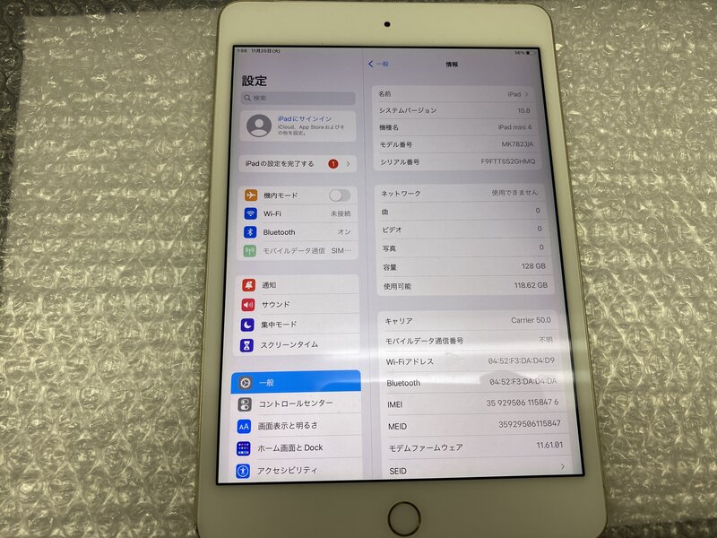アクティベーションロック・・・OFF バッテリー膨張