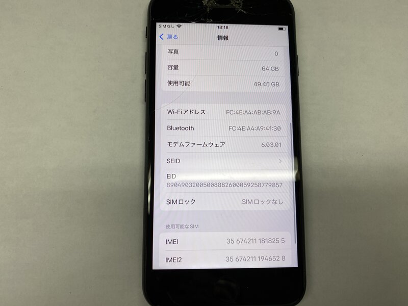 アクティベーションロック・・・OFF 画面割れ・インカメラ不可