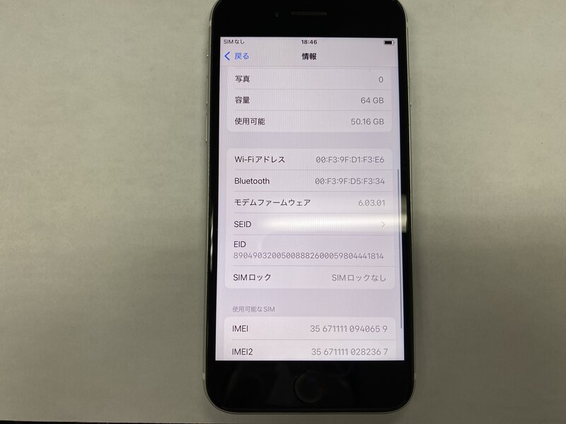 EQ469 SIMフリー iPhoneSE 第2世代 ホワイト 64GB