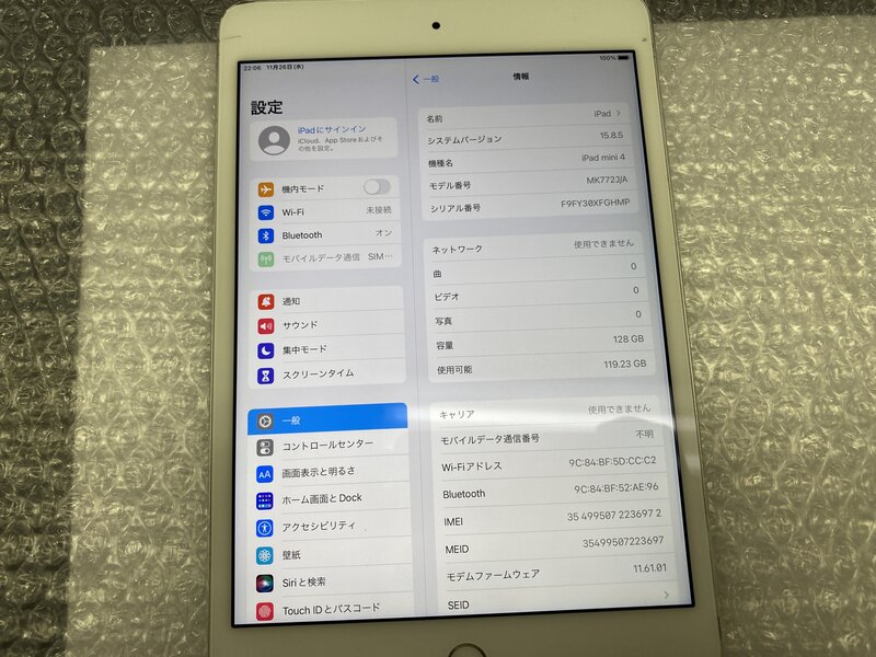 アクティベーションロック・・・OFF 音量大ボタン不可・画面傷・アンテナ部分割れ・フレーム変形