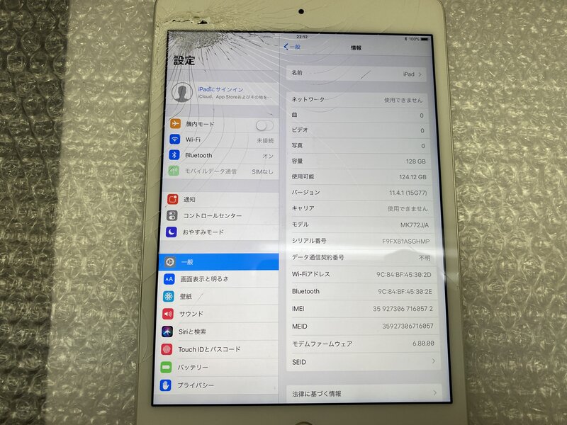 アクティベーションロック・・・OFF 画面割れ