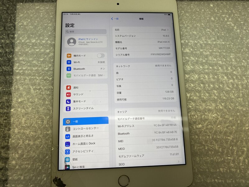 アクティベーションロック・・・OFF 画面割れ