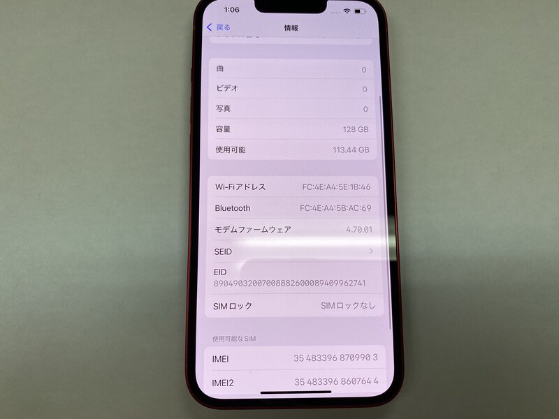 アクティベーションロック・・・OFF 充電端子不可(ワイヤレス充電可)