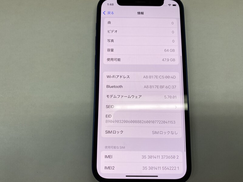 EQ698 SIMフリー iPhone12mini ブルー 64GB AppleCareあり
