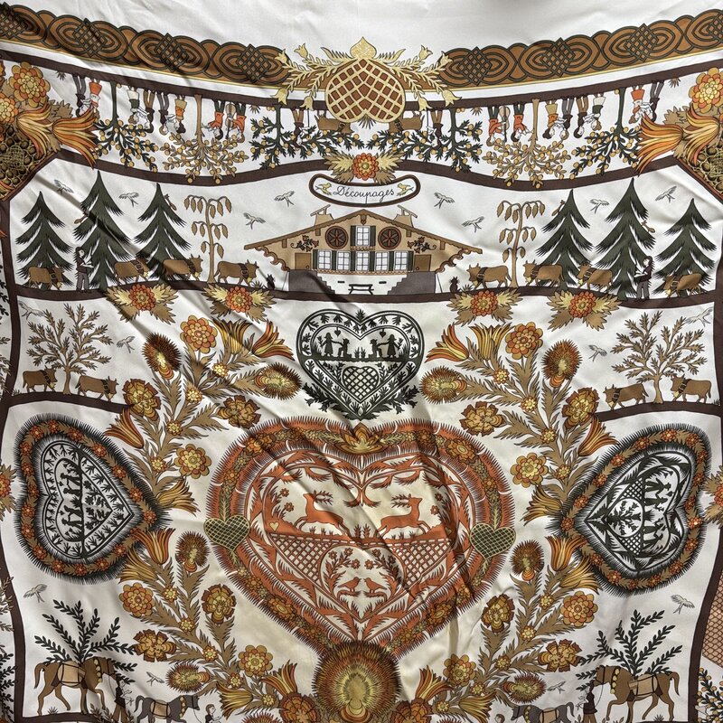 1円~ 良品 HERMES エルメス スカーフ カレ90 シルク100% Decoupages デュパージュ 大判 ストール IW512AA03HRM//