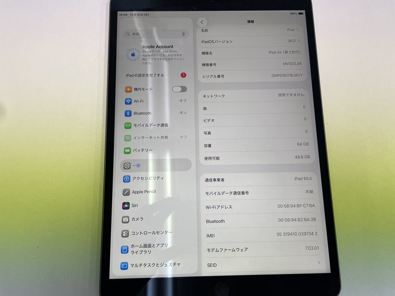 バッテリーに関しましては消耗品のため新品同様の性能を発揮しない場合がございます。予めご了承ください。