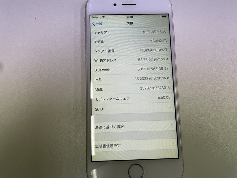 MI491 softbank iPhone6 64GB シルバー 判定〇