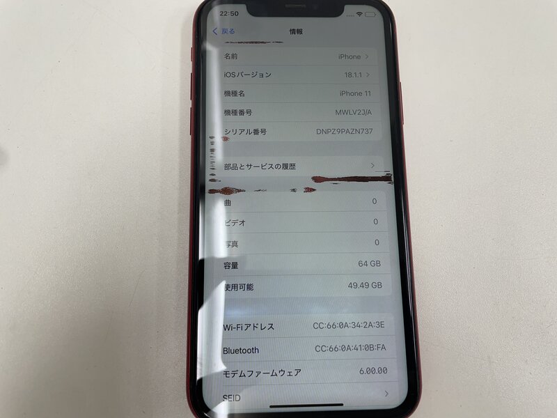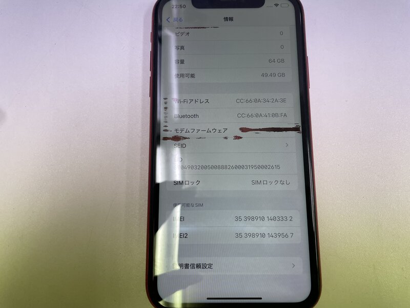 アクティベーションロック・・・OFF アウトカメラガラス破損・液晶不良・光漏れ