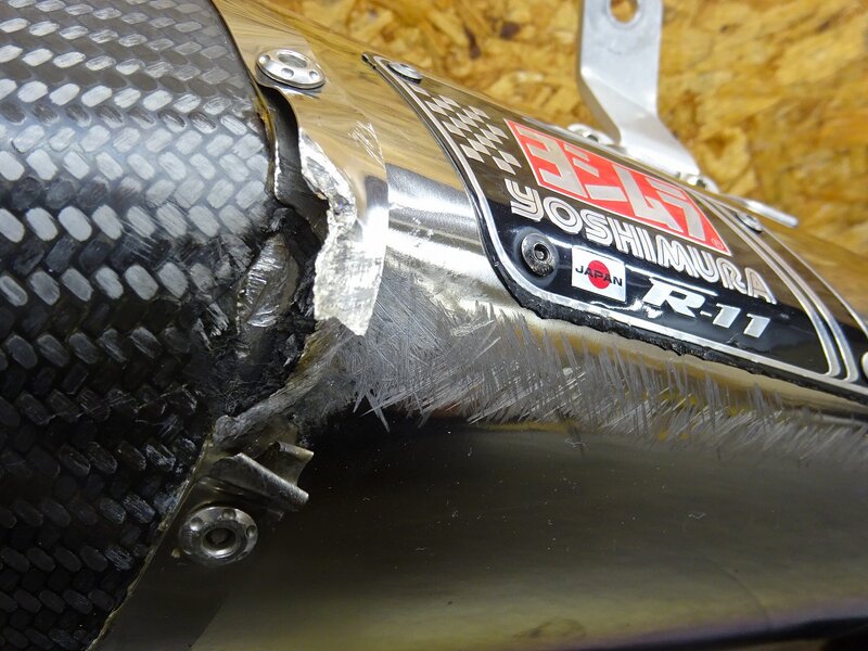 【251220】Ninja250(EX250L-019)◆ 社外マフラー エキパイ サイレンサー フルエキ ヨシムラ R-11 チタン カーボン 凹み/削れ有 【ABS付