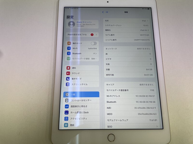MI546 docomo iPad Air2 Wi-Fi+Cellular A1567 64GB ゴールド 判定〇