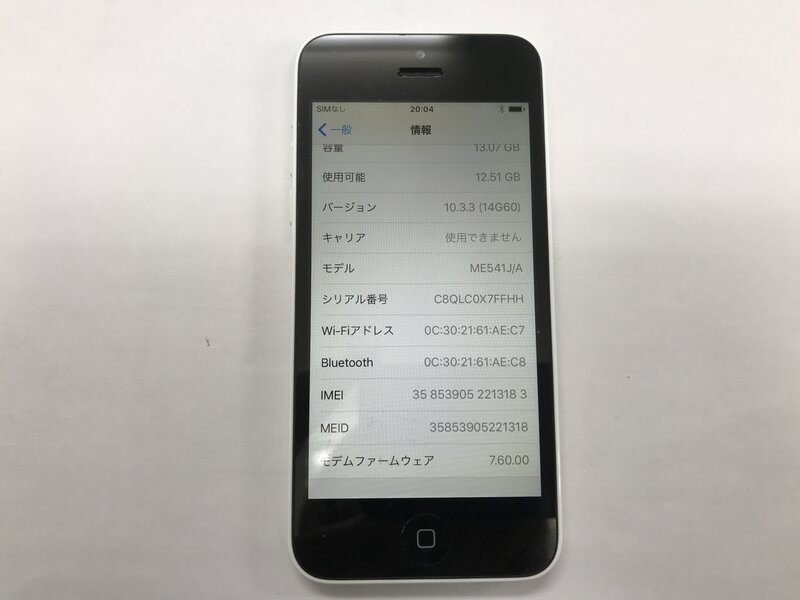 LG278 au iPhone5C ホワイト 16GB 判定○
