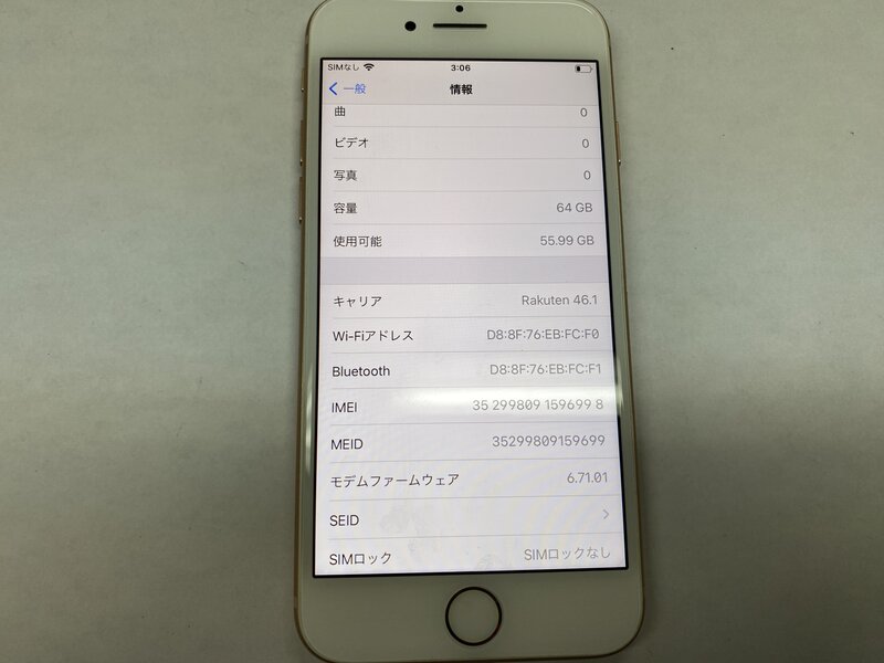 ET096 SIMフリー iPhone8 ゴールド 64GB