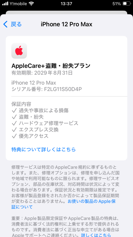 アクティベーションロック・・・OFF 液晶焼付き・アウトカメラレンズ割れ AppleCare+盗難・紛失プラン 有効期限: 2029年8月31日 ※AppleCareは前所有者により解約になる恐れがあります。解約になった場合はAppleCareのサポートを受けることはできません。また解約を理由として弊社に返品返金や一部値引き等を請求されても対応いたしかねます。