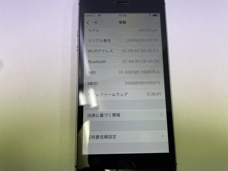 MI837 au iPhone5s 16GB スペースグレイ 判定〇