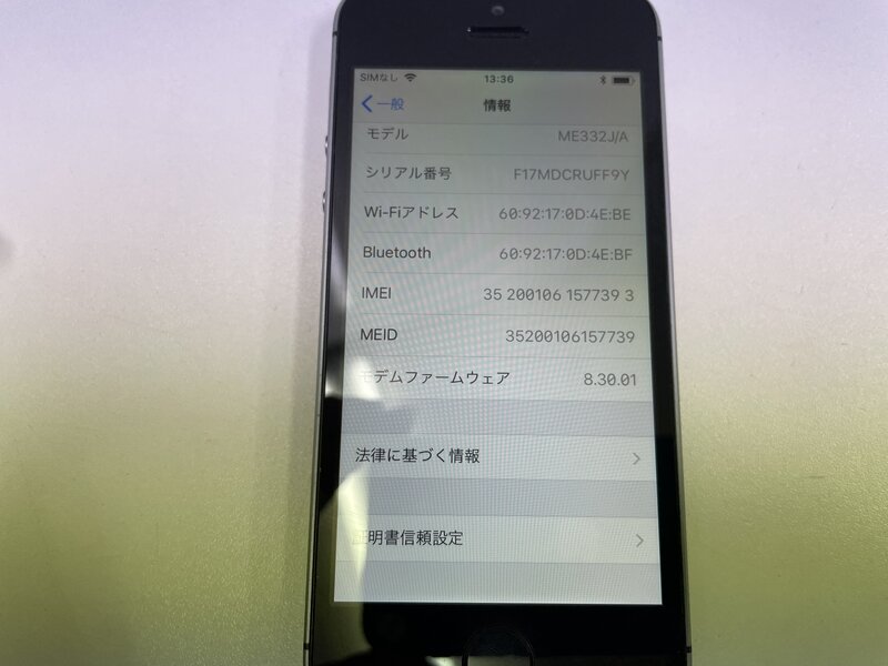 MI838 au iPhone5s 16GB スペースグレイ 判定〇