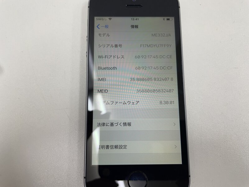 MI843 au iPhone5s 16GB スペースグレイ 判定〇