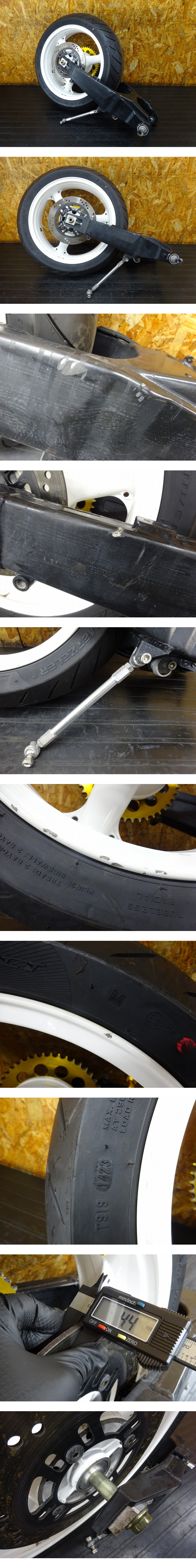 ※単体入庫のため、詳細不明です。写真にてよくご確認の上ご入札お願いします。目視でのフレはありませんでした。『GPZ900より外し』のメモが貼られていました。中古タイヤ:METZELER ROADTEC Z8 170/60-17 23年14週。