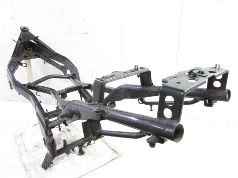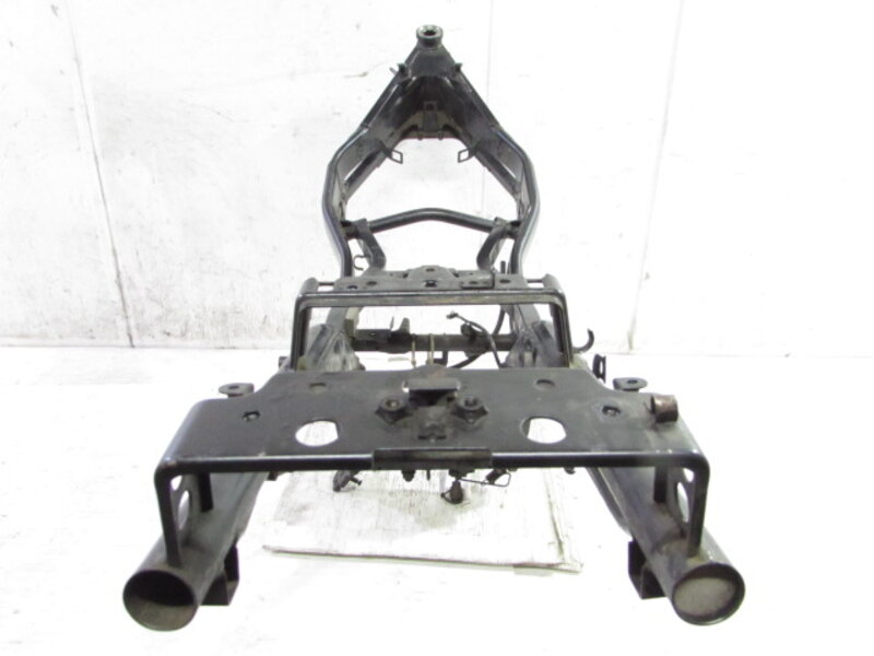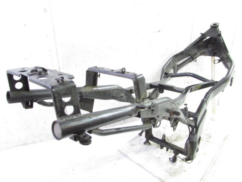 こちらの車両より取外したパーツ一台分を◆コチラ◆に出品しておりますので、ぜひご覧下さいませ。 ■商品詳細■ ☆フレーム・・・登録書類有! 目視で曲がりも御座いません! ☆エンジン・・・始動確認済!! 電圧 13.72V ☆フロントフォーク・・・インナーチューブ径 約38mm キャリパー取付ピッチ 約100mm ☆リアサスペンション・・・固定穴~固定穴 約320mm ☆Fホイール・・・17×2.75 ☆Rホイール・・・17×3.50 ☆Fタイヤ・・・DURO 110/70-17 ☆Rタイヤ・・・DURO 140/70-17 ☆ハンドル・・・高さ 約5cm 幅 約62.5cm