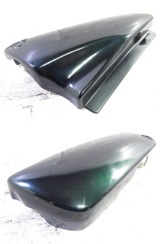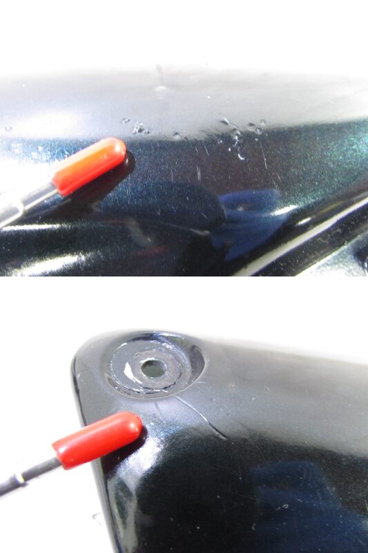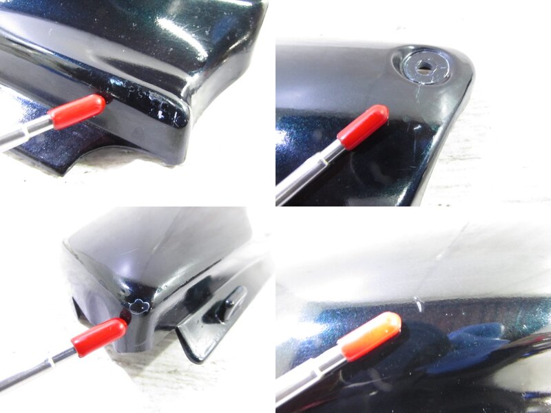 【外装】 ☆タンク・・・特に大きな破損はなく、艶も御座います! タンク内見える範囲に少し錆が見られますので燃料フィルターのご使用、または洗浄補修後のご使用をお勧めいたします!一部傷や塗装ヒビ、凹みが御座います! ☆タンク前カバー・・・特に大きな破損は御座いません! 一部欠けが御座います! ☆シュラウド・・・左右共に特に大きな破損は御座いません! 一部傷やひび割れ、欠けや割れ、補修など御座います! ☆Fフェンダー・・・特に気になるような破損は御座いません!一部傷が御座います! ☆サイドカバー・・・左右共に特に大きな破損は御座いません! 一部傷やひび割れが御座います! ☆テールカウル・・・上下共に特に大きな破損は御座いません!一部傷やひび割れ、欠けなど御座います! ☆Fシート・・・特に大きな破損は御座いません! 先端フチに一部軽い破れが御座います! ☆Rシート・・・特に気になるような破損は御座いません!