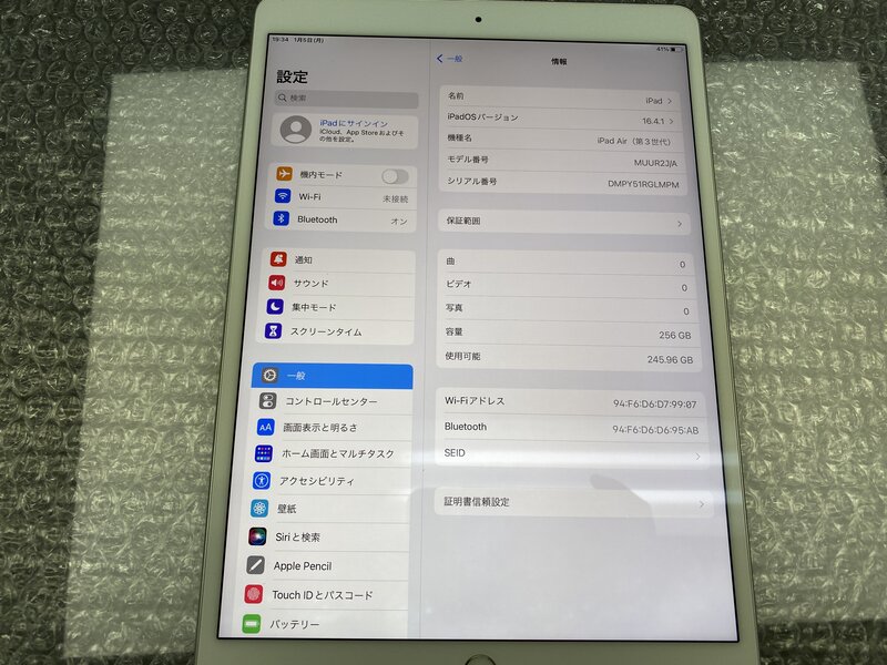 ET783 iPad Air 第3世代 Wi-Fiモデル A2152 シルバー 256GB