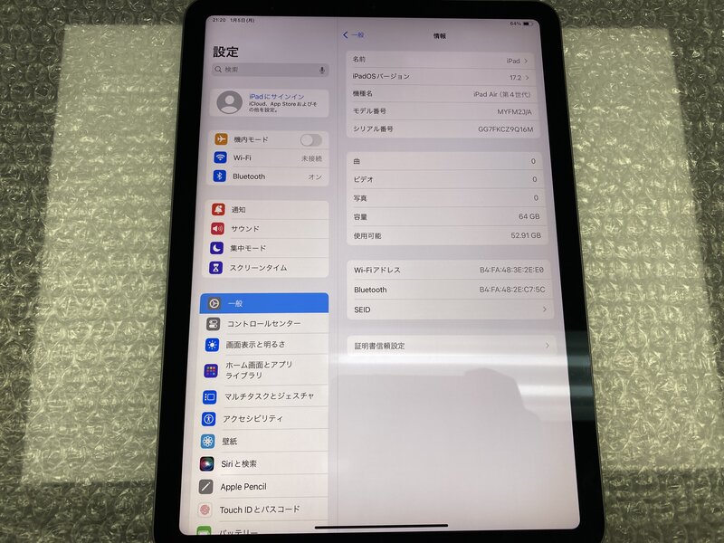 ET789 iPad Air 第4世代 Wi-Fiモデル A2316 スペースグレイ 64GB