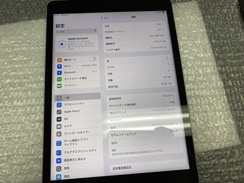 アクティベーションロック・・・OFF 本体歪み・輝点