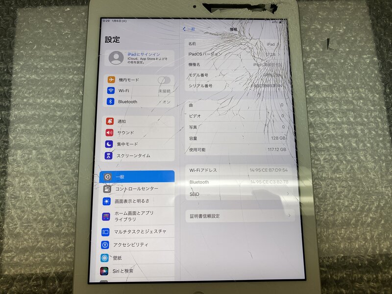 アクティベーションロック・・・OFF 画面割れ・インカメラ割れによる曇り・電源ボタン不可