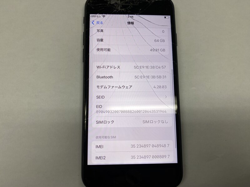 アクティベーションロック・・・OFF 画面割れ・インカメラ曇り