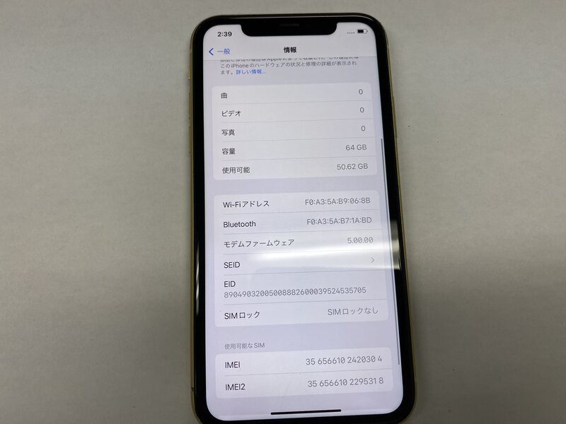 EU155 SIMフリー iPhone11 イエロー 64GB