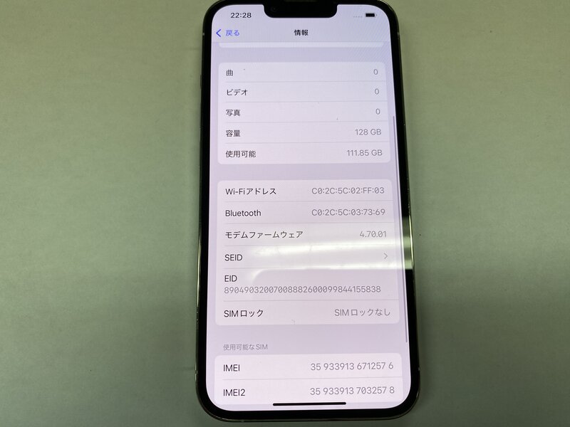 アクティベーションロック・・・OFF カメラ警告・アウトカメラ不良(0.5倍レンズ切り替え不可)