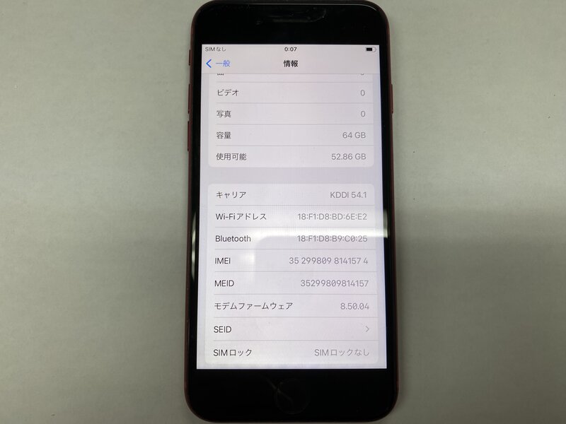 EU257 SIMフリー iPhone8 レッド 64GB