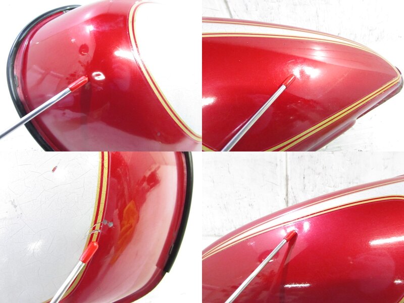 【外装】 ☆タンク・・・特に気になるような破損はなく、艶も御座います! タンク内見える範囲に特に気になるような錆は見られません! 一部小さな塗装欠けや軽度の笑窪が見られますが比較的状態の良い商品となります! ☆Fフェンダー・・・特に気になるような破損は御座いません! 一部表面錆が御座います! ☆サイドカバー・・・左右共に特に気になるような破損もなく、艶も御座います! 一部傷や補修、色抜けが御座います! ☆シートカウル・・・特に気になるような破損はなく、艶も御座います!商品状態良好です! ☆Rフェンダー・・・特に気になるような破損は御座いません! 一部軽度の笑窪や穴あけ加工が御座います! ☆シート・・・特に大きな御座いません! 一部レザー小破れが御座います!