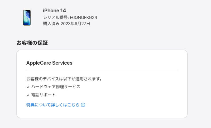 アクティベーションロック・・・OFF 充電端子不可(ワイヤレス充電可)・背面左下欠け AppleCare Services 購入日: 2023年6月27日 ※AppleCareは前所有者により解約になる恐れがあります。解約になった場合はAppleCareのサポートを受けることはできません。また解約を理由として弊社に返品返金や一部値引き等を請求されても対応いたしかねます。