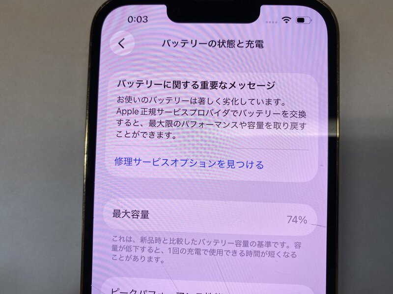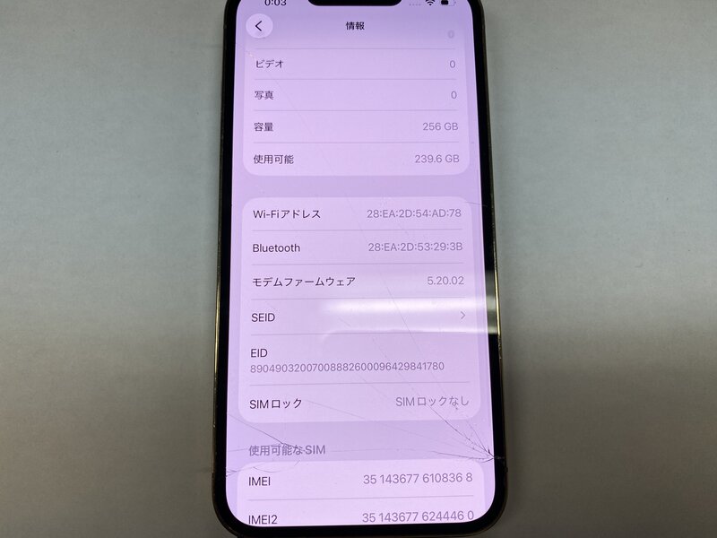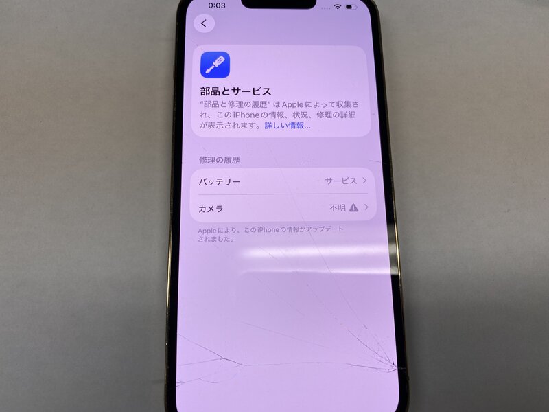 アクティベーションロック・・・OFF 充電端子不可(ワイヤレス充電可)・画面割れ・背面割れ・カメラ警告・アウトカメラ不可